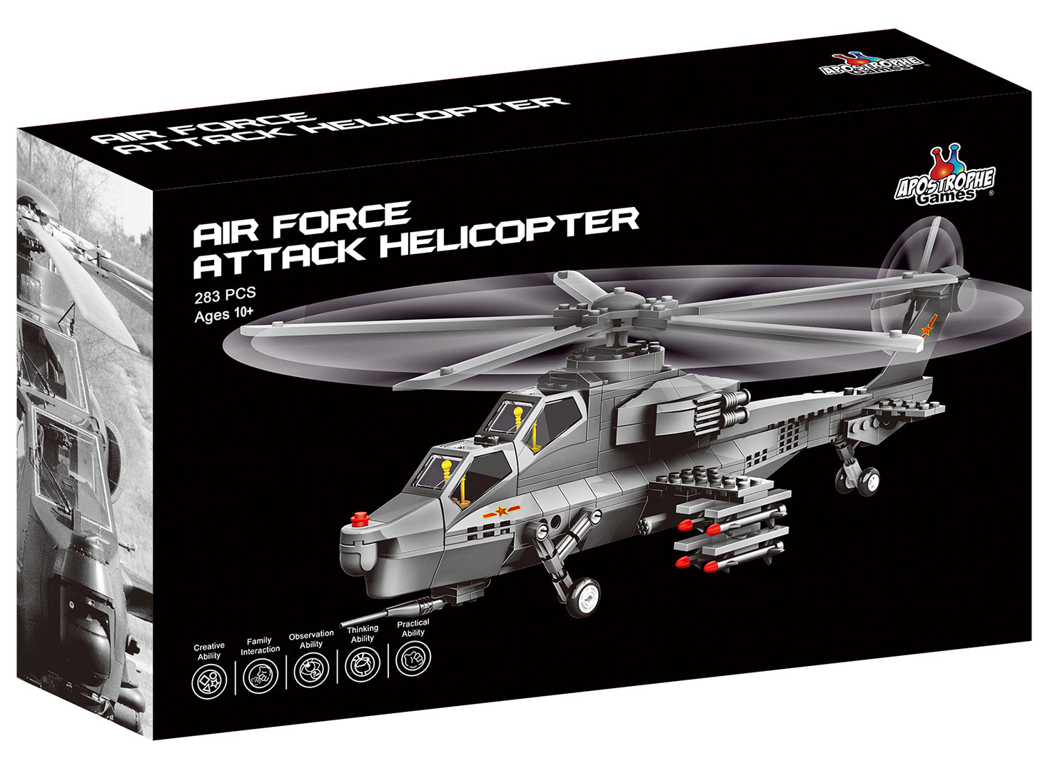 - A Must in Your Collection: If you are passionate about Air Force Helicopters, awesome aircrafts and innovative warcraft equipment, with Apostrophe Games you can build your mini attack helicopter toy from scratch and complete your collection!