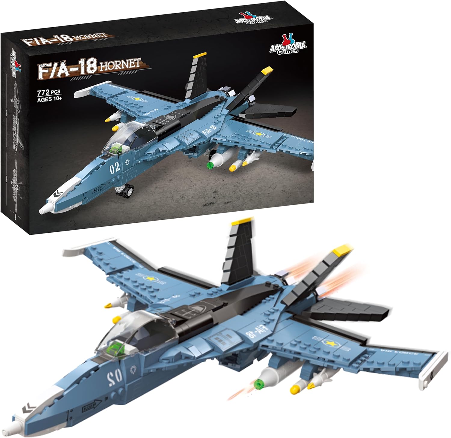 - Complete Building Set: The Apostrophe Games toy building set includes 744 pieces to build from scratch an awesome F/A-18 Hornet Fighter jet aircraft without compromising on aesthetic details and functions.