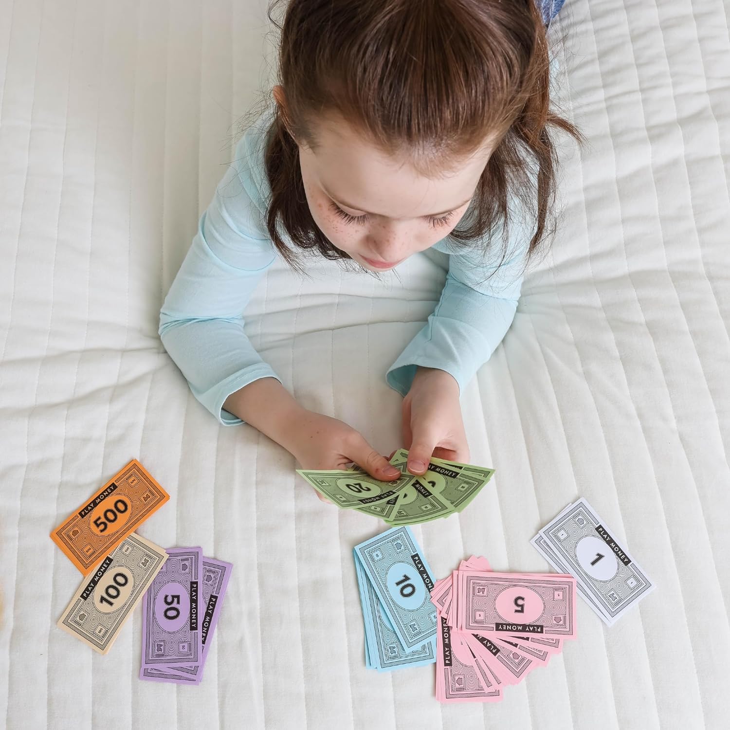 - 520 Pcs Money Replacement Bills (3x more than come with your favorite property trading game): Looking for replacement money for an existing board game or play money to create your own board game? Our play money are an excellent choice! At about 4 inches (10 cm) by 2 inches (5 cm), these play money are the same size as everyone’s favorite opoly property trading game.